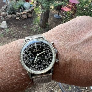 The Breitling Navitimer with the iconic "Beads of Rice" bezel is a sought-after vintage design that exudes classic aviation heritage. This particular variant with an all-black dial is both elegant and functional, making it a favorite for pilots and collectors alike.