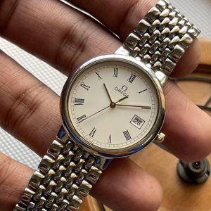 The Omega De Ville Quartz is a refined and elegant timepiece, perfect for those who value understated luxury and timeless design. Its Roman numeral dial and iconic "beads of rice" bracelet exude sophistication, making it a versatile option for both formal and casual wear.