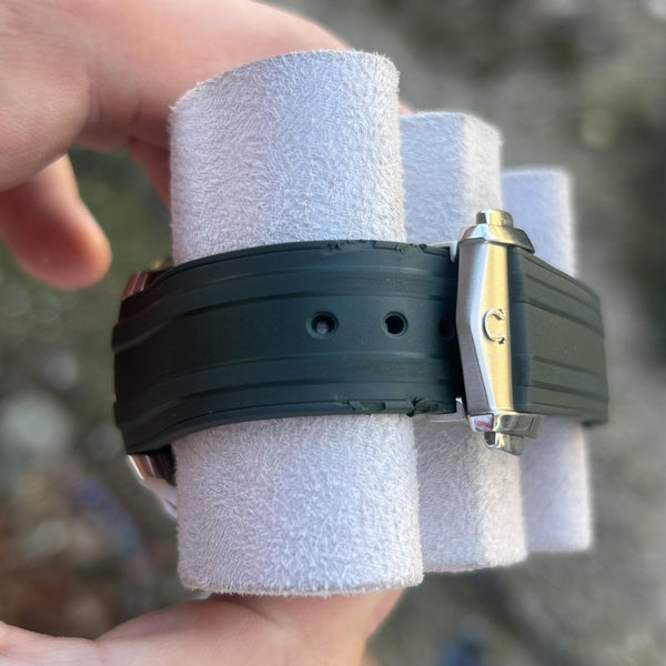 • Includes an aftermarket ‘Omega stamped’ green two-piece strap for added versatility