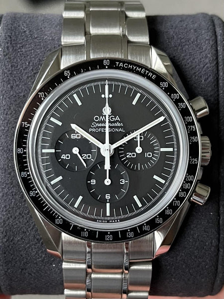 For sale is the iconic Omega Speedmaster Moonwatch Professional, the ultimate chronograph with a legacy tied to space exploration. This complete package offers everything needed for collectors and enthusiasts alike.