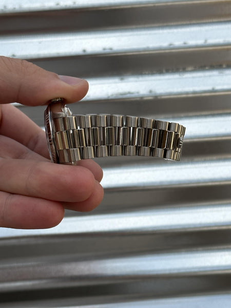• Material: Solid 18k white gold, including the case, fluted bezel, and presidential bracelet