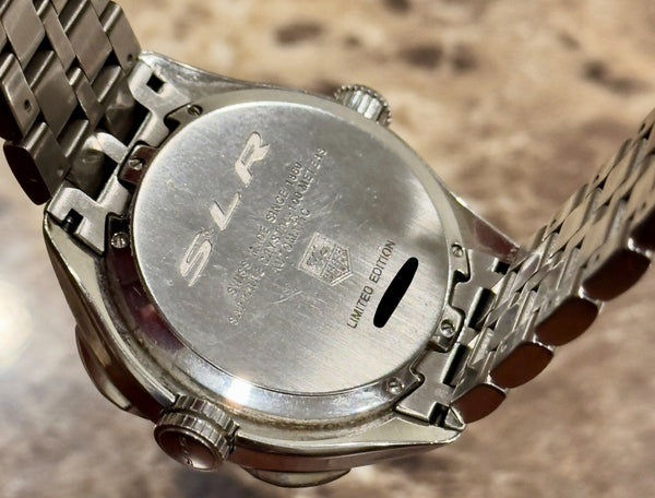 This TAG Heuer SLR Caliber 17 is in excellent condition, with the stainless steel case and bracelet showing minimal signs of wear. The movement is running accurately, and the sapphire crystal is flawless. A unique and rare timepiece for collectors and motorsport enthusiasts.
